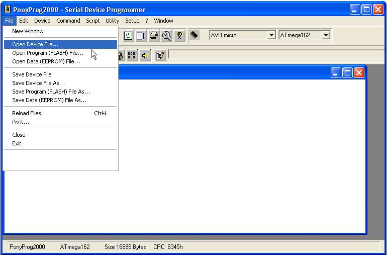 Step 10: Select Atmega 162 from the devices type drop down combo box.