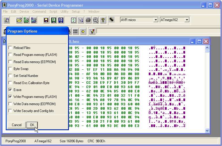 Step 18: Make sure only the "Erase" and "Write Program Memory" check boxes are checked.