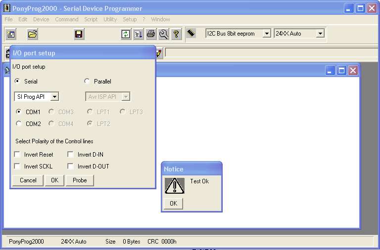 Step 5: If your computer Com ports are setup properly you should get the Test OK notice below.
