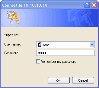 Enter in the default username and password then press the OK button. You will be taken to the