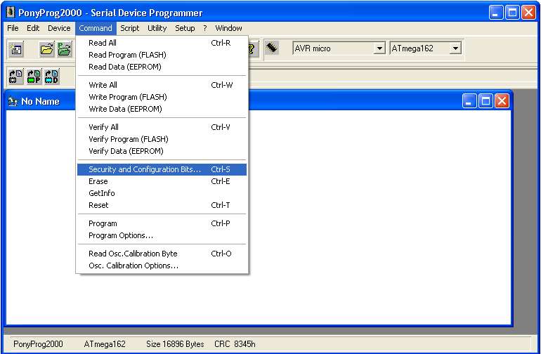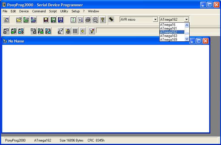 Step 10: Select Atmega 162 from the devices type drop down combo box.