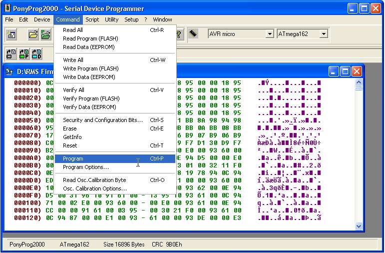 Step 19: Select "Program" from the Command pull down menu to flash the RMSv1 device.