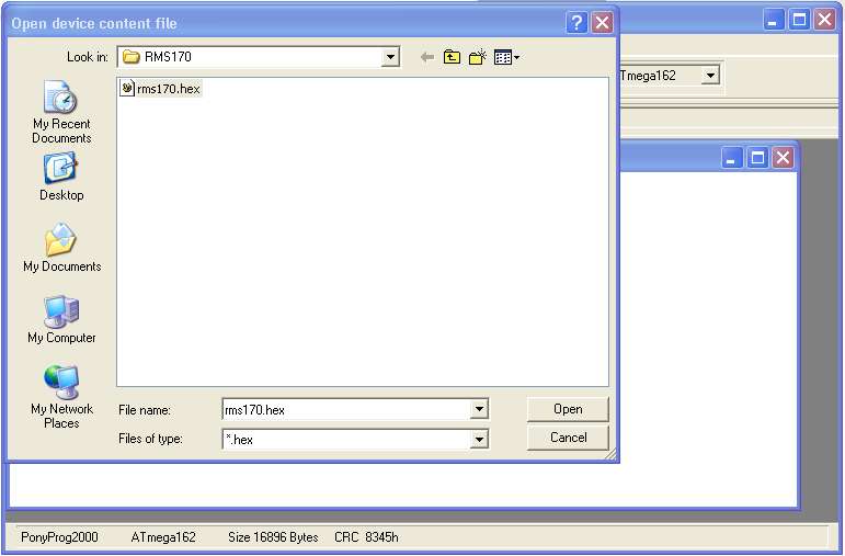 Step 15: Select *.hex from the "Files of Type" drop down combo box.