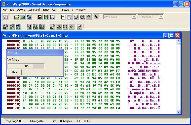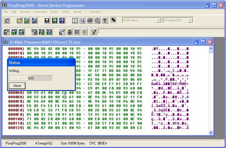 Step 20: The Hex file is being written to the RMSv1 device flash memory.